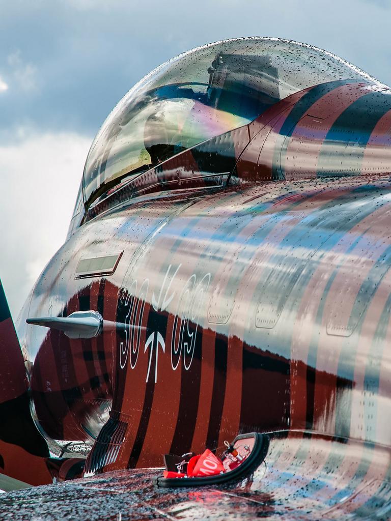 a tak se necháme Majklem teleportovat až nedaleko k Rostocku. Teplota není takhle poránu moc příjemná a vypadá to na klasický náš výlet - vítr a zima... Ale nějaké teplé ponožky navíc v báglu naštěstí mám - budou se hodit. Na čerstvě pokosené polní parkoviště přijíždíme tak (bude veselé, jestli do toho naprší), že máme čas se doobalit a jít se postavit do fronty - zanedlouho má začít jezdit busy na základnu. Předpokládáme, že to vypukne s německou precizností přesně podle naplánovaného rozpisu v 6.30. K bráně základny je to několik kilometrů a od brány jedeme ještě dobré 2km. Jsme vysazeni nedaleko pojížděčky a do 9 hod., kdy bude vpuštěna "nespotterská" veřejnost. Máme čas projít statiku, kde jsou Typhoony německé, španělské, polské Mig-29 a SU-22, Tornada, F-16 holandské z Volkelu, dánské ze Skydstrupu, americké F-16 ze základny v Avianu a to dřív, než budou mašiny obsypány lidmi. Pan Valda se v průběhu dne pokouší o umění a možná, že se mu to nakonec i povedlo: