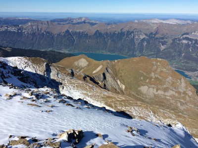 Pak už poměrně ostrým tempem mažeme dolů. Cestou posíláme klukům zprávu, že nás mají vyzvednout v 19:00 zase ve Schwazwaldalpu na parkovišti. (Odhad nám nevyšel jen o 15 minut a dolů nám to trvalo 3 hodiny). Sice jsme cestou nahoru přemýšleli, že bychom se raději vyhnuli "medvědímu úseku" a šli to pěšky do Grindewaldu těch 8 km, ale to bychom šli za tmy, lesem a je otázka, jestli by to byla lepší (bezpečnější) varianta. Cestou se občas otočíme a koukáme se na to, co jsme museli dopoledne vyšlápnout a nechce se mi to věřit. Vědět, do čeho se pouštíme, tak bychom to možná nevylezli. Já osobně si myslím, že příště sem půjdu teprve ve chvíli, kdy budou mít Švýcařiu Rafaly...